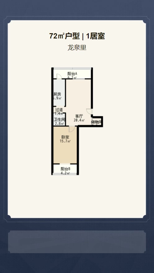 售完龙泉里1居室户型图 | 建面:72㎡ | 朝向:南北通透