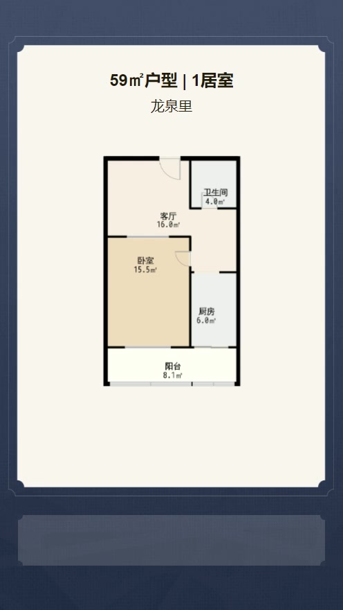 售完龙泉里1居室户型图 | 建面:59.25㎡ | 朝向:朝南