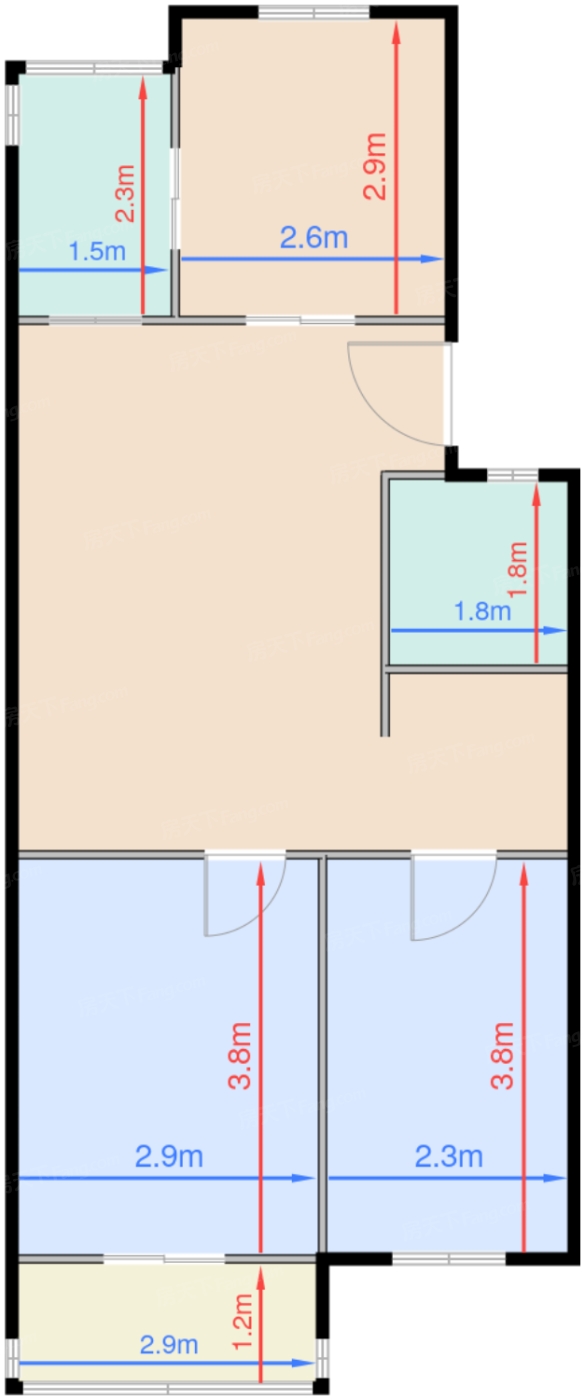 卧室B 10.5㎡ | 面宽2.9m | 进深3.8m