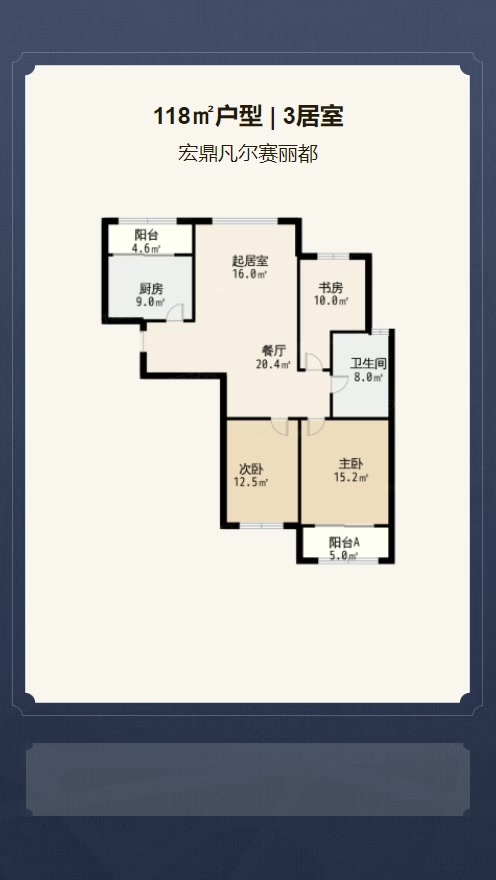 售完高层B2户型 | 建面:118㎡ | 朝向: