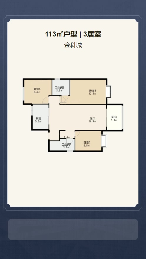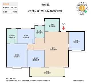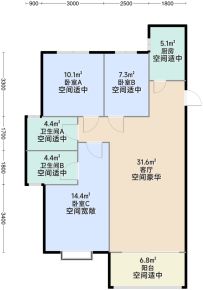 - 空间适中虽然卧室C面积不足,但设计却独具匠心,布局合理,让每一寸空间都发挥出其最大的价值,为您带来舒适的休憩体验。