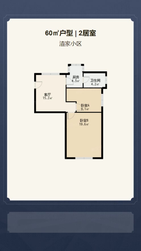 售完渣家小区2居室户型图 | 建面:60㎡ | 朝向:朝南