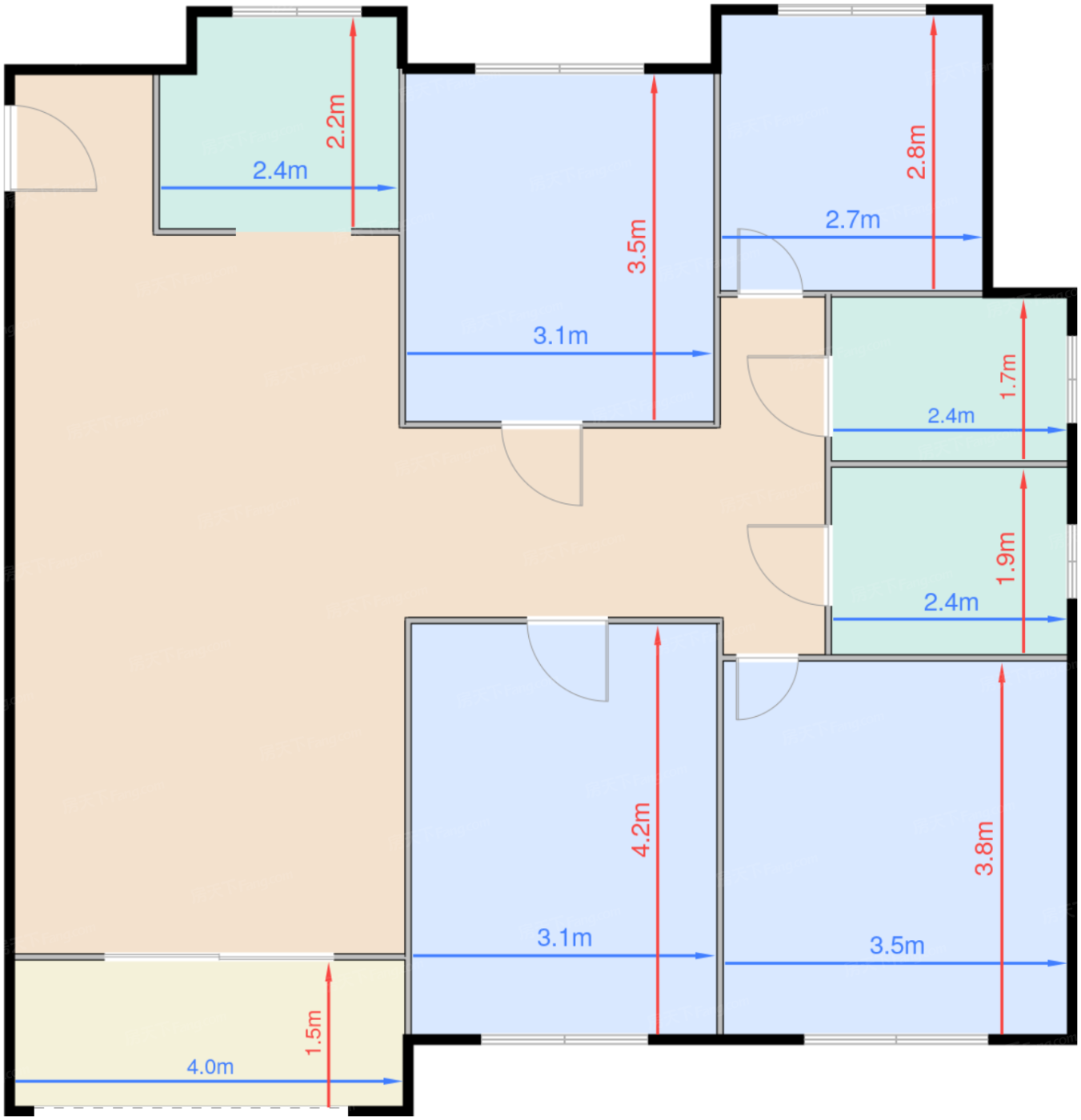 | 卧室B | 7.2 | 2.7 | 2.8 | 良好 |