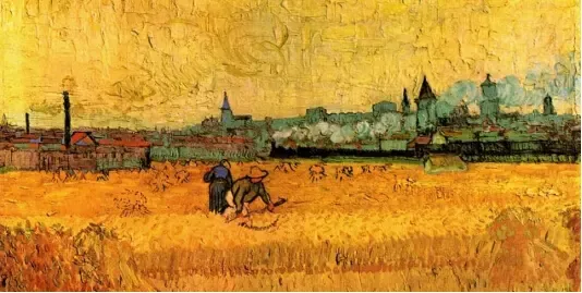 阿尔勒让梵高找到了生命蓬勃向上的律动。他在这个古城停留的十五个月创作了约二百幅油画,进入他一生中创作的鼎盛时期。阿尔勒猛烈的阳光和刺目的麦田使他“ ”,他的创作激情喷涌而出。他在给弟弟提奥的信中说道:“我经常神志不清,意识不到自我,画面就像梦幻一样冲我而来。”他开始尝试用一种原色来表达主题,用近似的补色作画面的呼应与映衬,或用鲜明的对比色作深入的延伸。阿尔勒麦田里的农舍、夜间的露天咖啡馆、罗纳河边的星空都成为了他笔下的不朽画作。