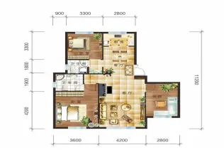 该项目户型设计非常好,主推户型是63.10㎡(3室2厅1卫),56.00㎡(3室2厅1卫)开发商的口碑较好,相比放心一些。