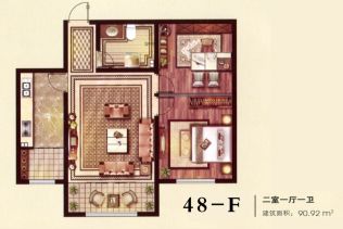 - 2室1厅1卫 在售90.92㎡3800.00元/平方米