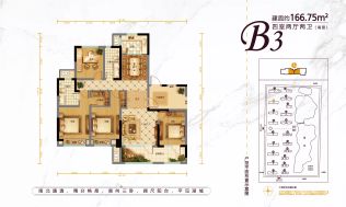 主力户型有166.75㎡(4室2厅1卫),165.05㎡(4室2厅1卫)的70年产权,更放心。