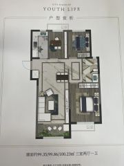 - 3室2厅1卫 在售99.35-100.23㎡54.64万元/套