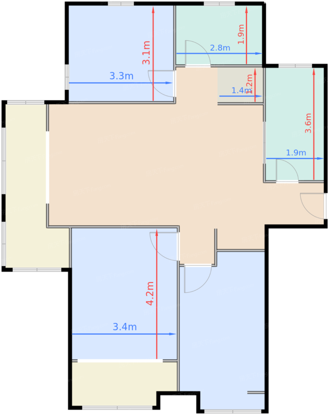 | 卧室C | 11.1 | 3.3 | 3.1 | 良好 |