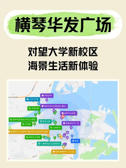 直线3km范围内有5个幼儿园。直线3km范围内有3个小学:横琴粤澳深度合作区第一小学、首都师范大学横琴子期实验小学、首都师范大学横琴伯牙小学。直线3km范围内有1个中学:十字门中学。