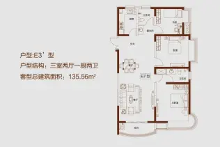 - 3室2厅2卫 在售135.56㎡价格待定