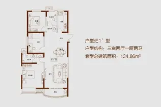 - 3室2厅2卫 在售134.86㎡价格待定