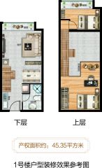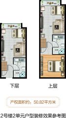 主力户型有50.82㎡(3室2厅2卫),45.35㎡(2室2厅1卫)的