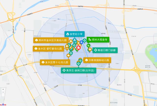 直线3km范围内有135个幼儿园。直线3km范围内有31个小学,如河南省实验中学思达外国语小学、四月天小学、郑州市瀚斯大外语小学、农科路小学国基校区(新校区)、郑州轻工业大学附属小学等。直线3km范围内有17个中学,如郑州市勤礼外语中学、郑州市第七高级中学、郑州七中高三教学区、郑州冠军中学南校区、郑州新奇中学等。