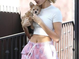 法拉·亚伯拉罕穿短背心炫腹秀上围 与男友人出街热聊