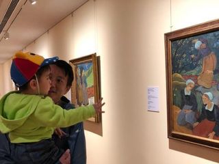 蔡远航带儿子看画展 萌娃缩在爸爸怀中可爱加分