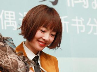 邓莎梳短发穿低调简装青春似学生 略施粉黛甜笑颜值超抗打