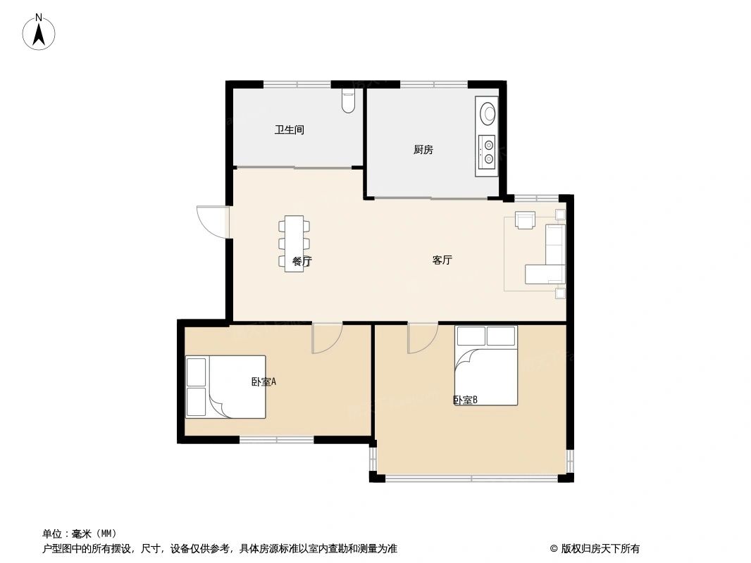 户型齐全,主打明厨,明卫,客厅朝南,全明格局,双卧朝南二居