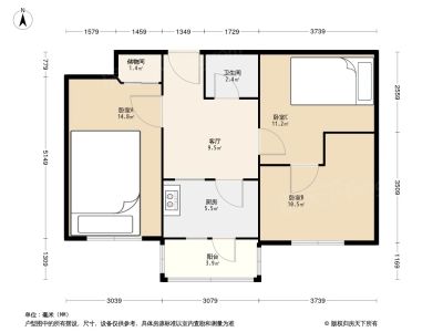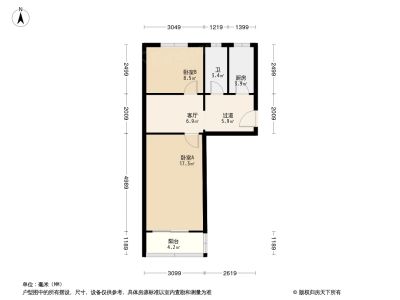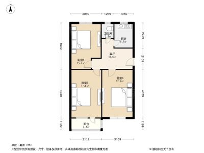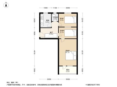 450万 60.9㎡ 3室1厅 南北