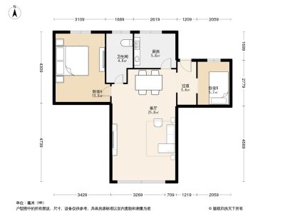729万 86.69㎡ 3室3厅 南北