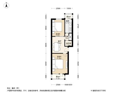 230万 75.59㎡ 2室1厅 东西
