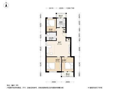 288万 62.74㎡ 2室1厅 南北
