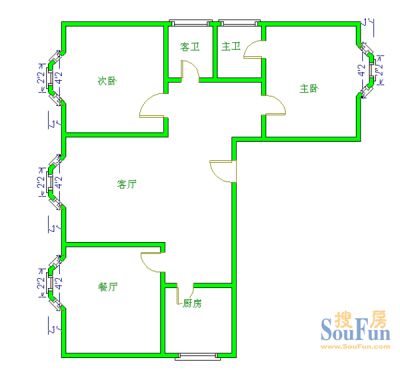 169万 122.27㎡ 3室2厅 东南