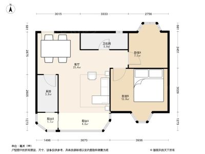 116万 88.24㎡ 2室1厅 南北