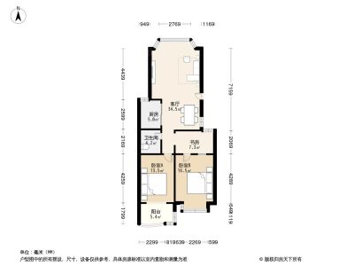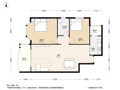 89.8万 68.42㎡ 3室1厅 东西南