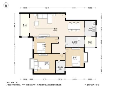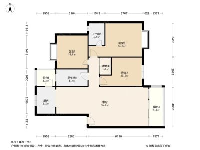 156万 137.98㎡ 3室2厅 南北