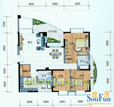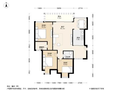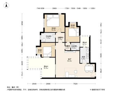 140万 153.67㎡ 3室1厅 西南
