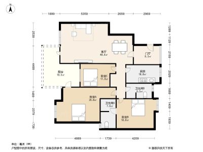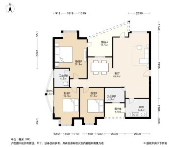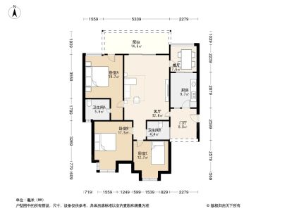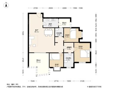 128万 127.31㎡ 3室2厅 东北