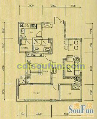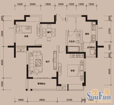 2室1厅1卫88.00㎡朝南户型报告