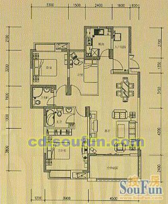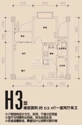 1室2厅1卫53.00㎡