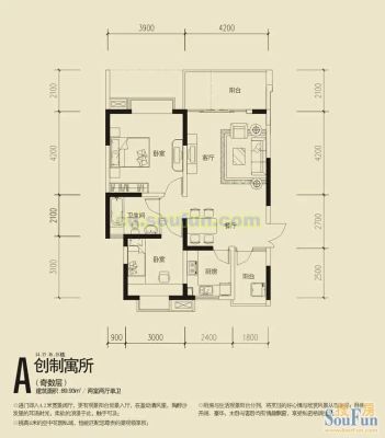93.8万 90.31㎡ 2室2厅 西北