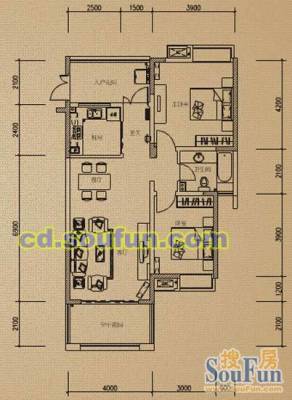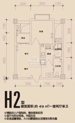 1室2厅1卫49.00㎡