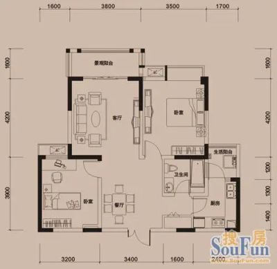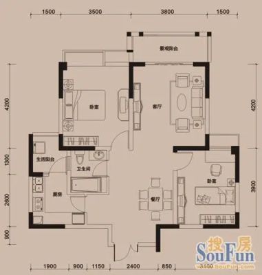 2室1厅1卫89.99㎡西南户型报告