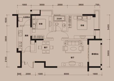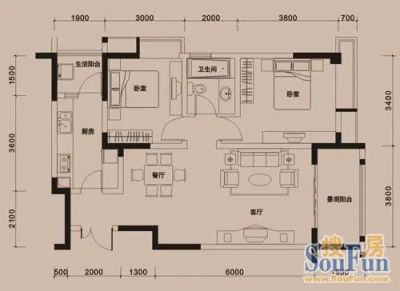 2室1厅1卫69.00㎡东南户型报告