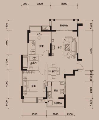 1室1厅1卫56.38㎡西南户型报告