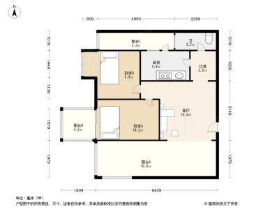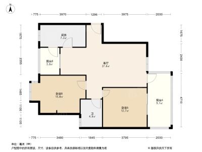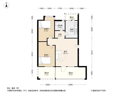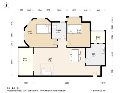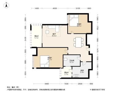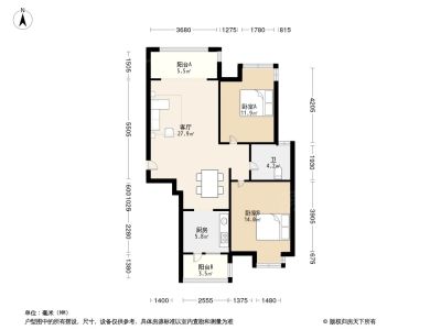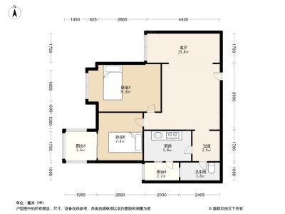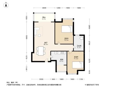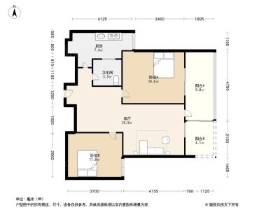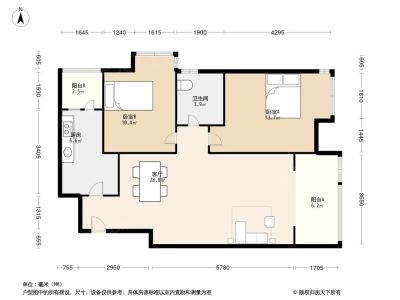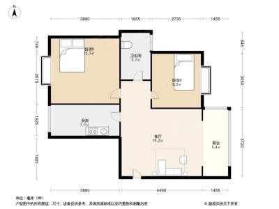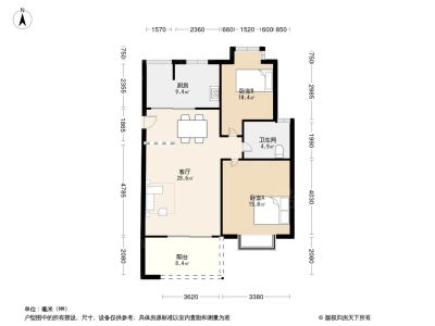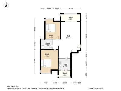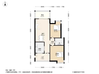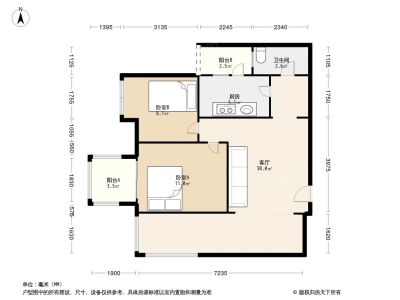 2室1厅1卫86.40㎡朝南户型报告