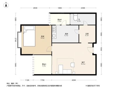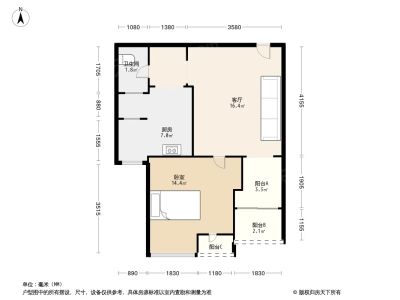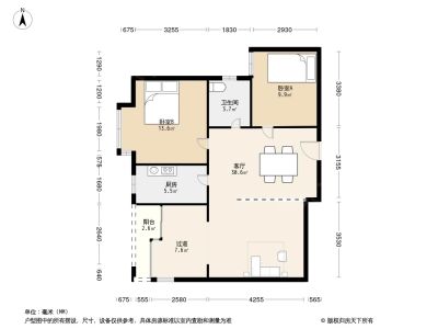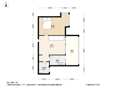 1室1厅1卫58.16㎡朝东户型报告