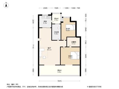 3室1厅1卫76.39㎡东南户型报告