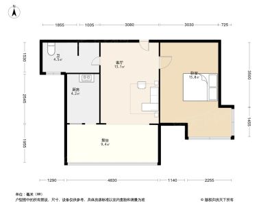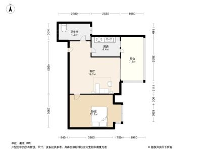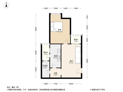 1室1厅1卫49.41㎡朝北户型报告
