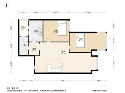 1室2厅1卫66.95㎡