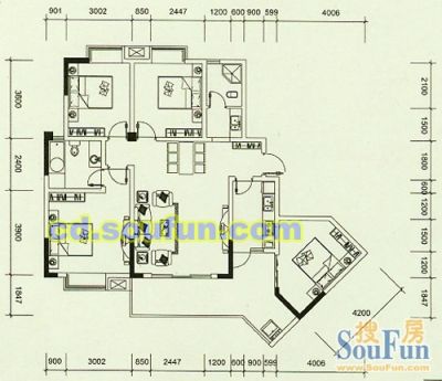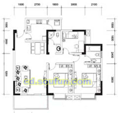 全成都二手房都有—只收2000中介费—八里阳光4室1厅 东南
