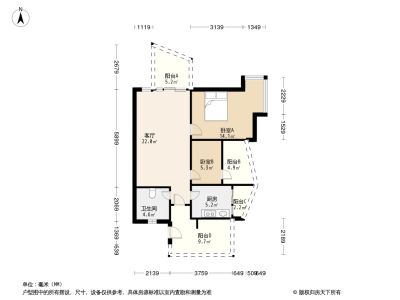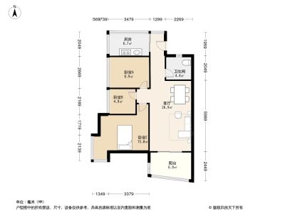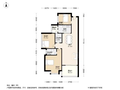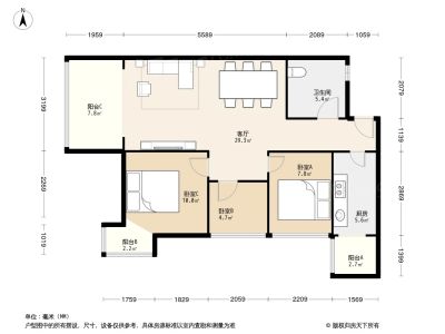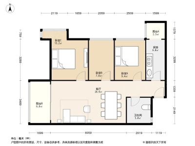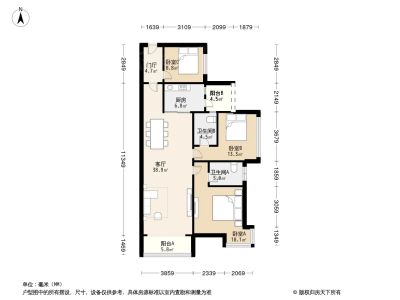 155万 88.51㎡ 3室2厅 西南