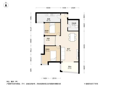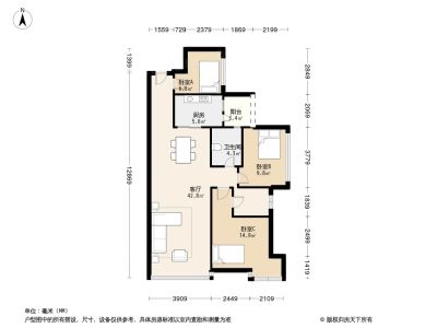 195万 86.4㎡ 3室2厅 南