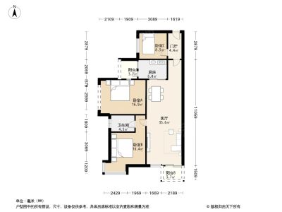 千禧河畔A区 2室1厅 南
