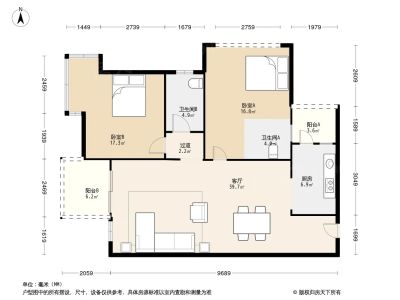 169万 127㎡ 3室2厅 南北
