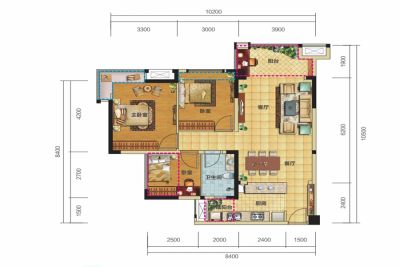 锦汇城B区 3室1厅 东南